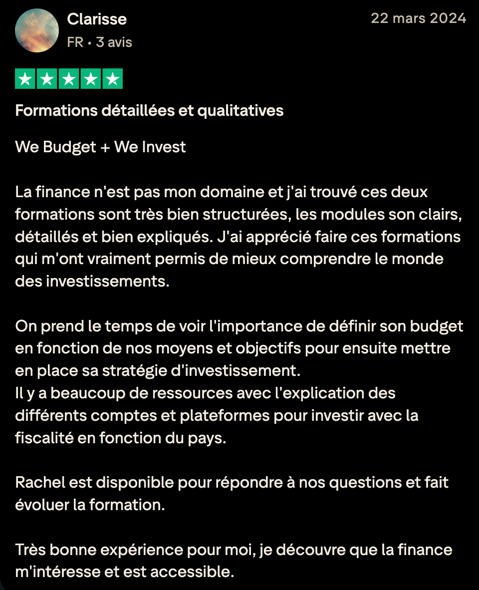Si tu as d’autres questions, je suis disponible à cette adresse : contact@rachelfinance.com