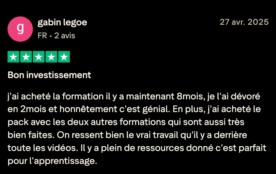 Tu as accès à la formation à vie ainsi qu'à toutes les mises à jour.