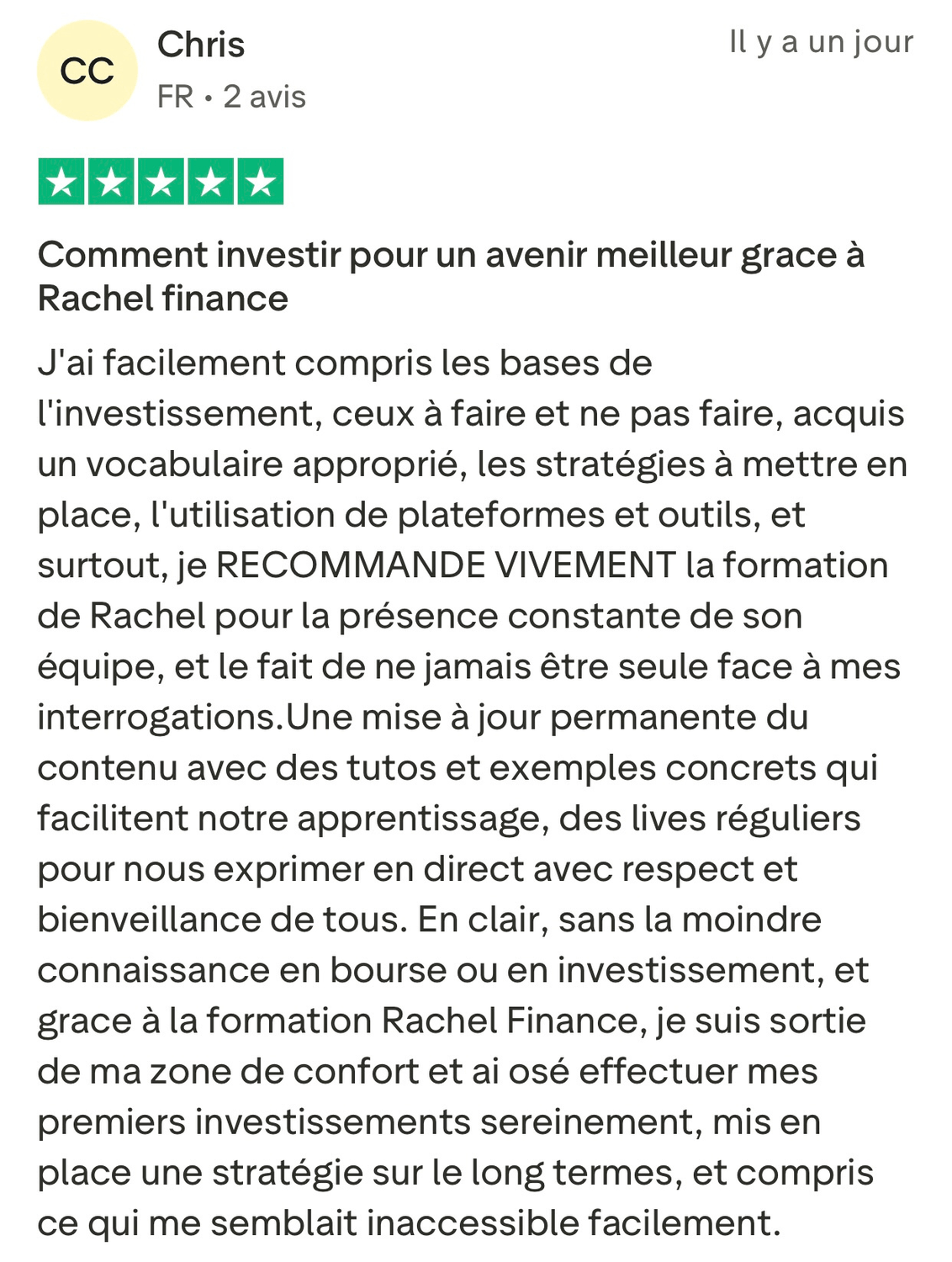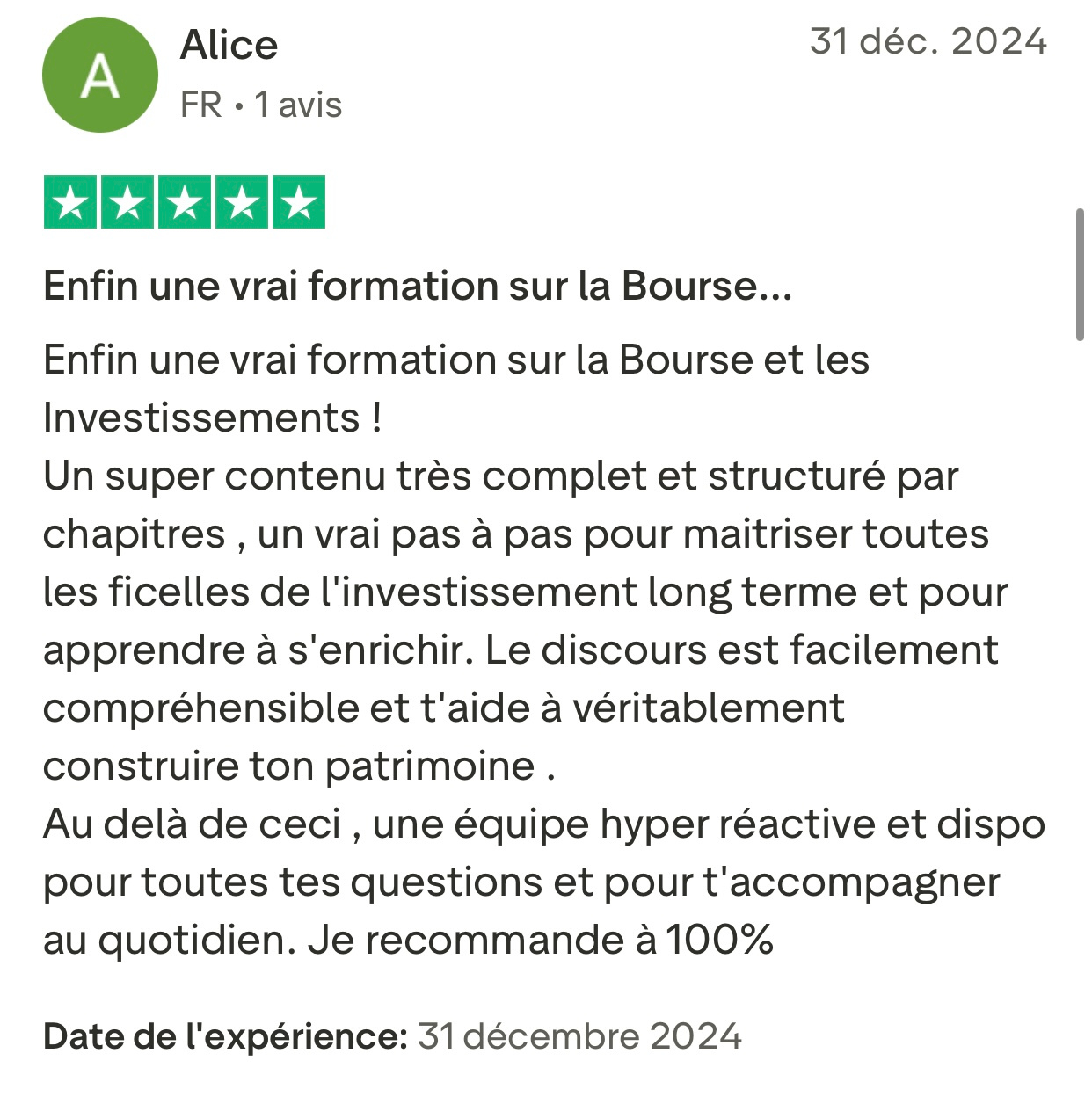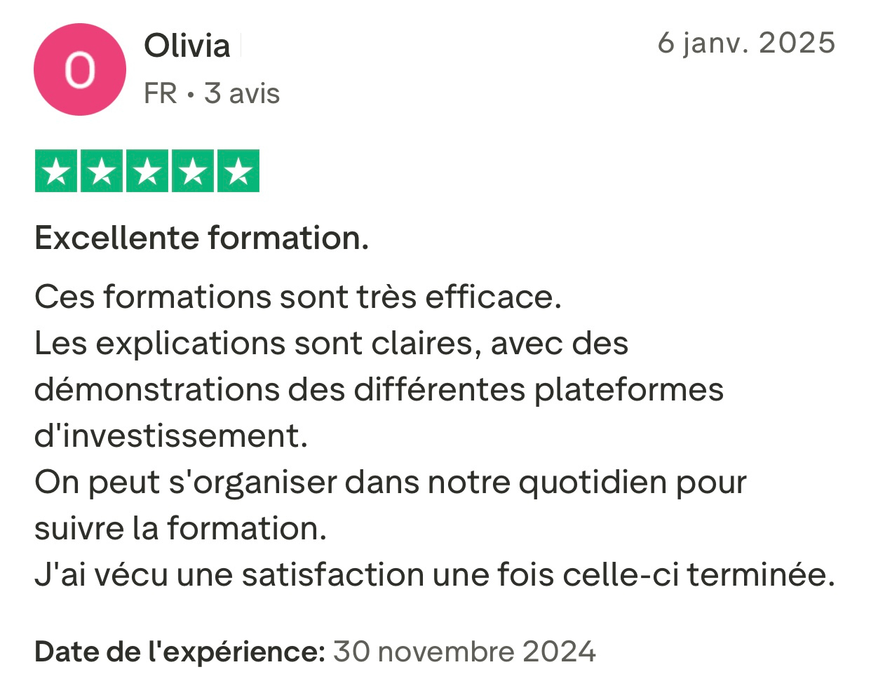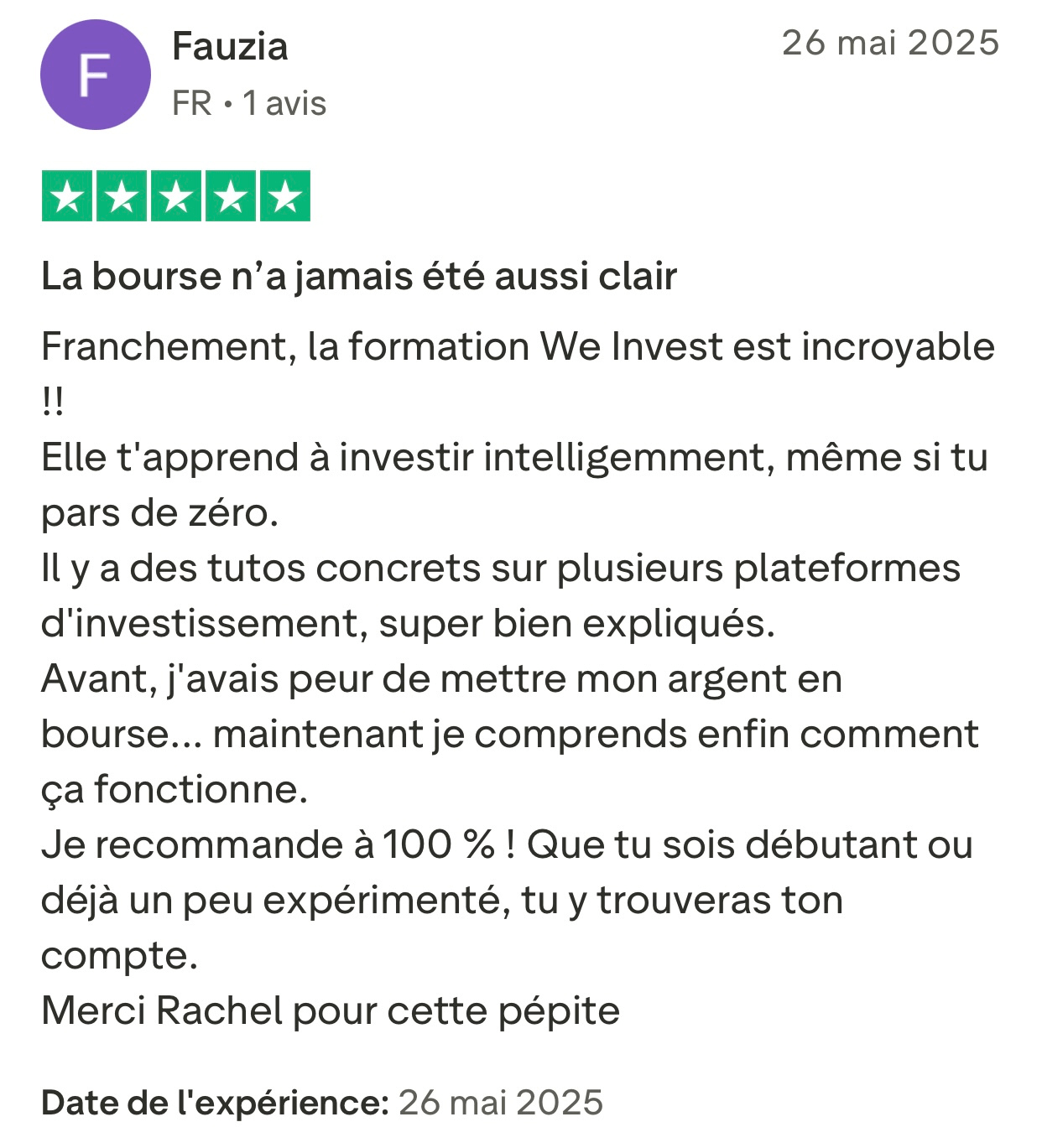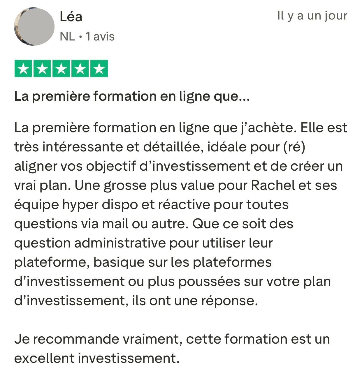 Un formation qui t'apprend à investir ton argent efficacement, avec une stratégie claire et rentable et qui te permet d'atteindre la liberté financière.