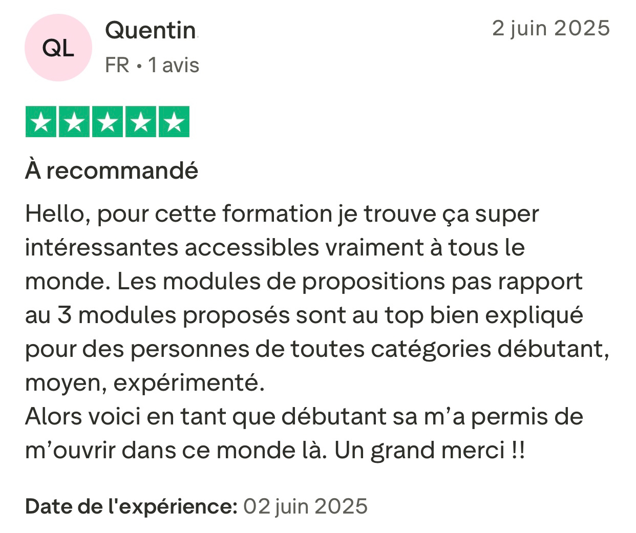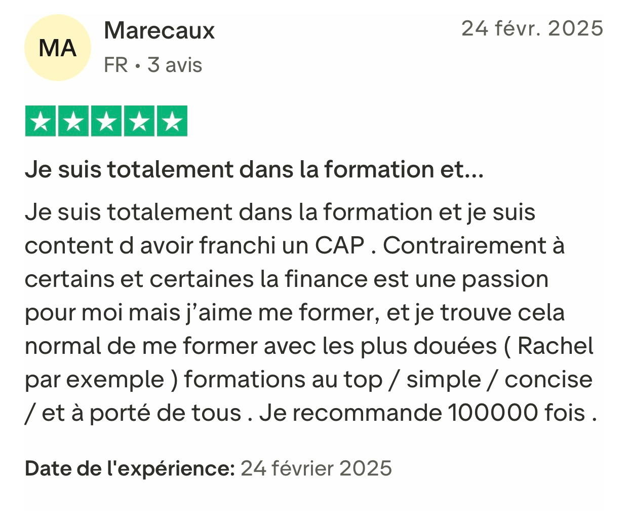 J’ai déjà accompagné plus de 3571 élèves, et les retours parlent d’eux-mêmes : une note moyenne de 4,8/5 sur Trustpilot.