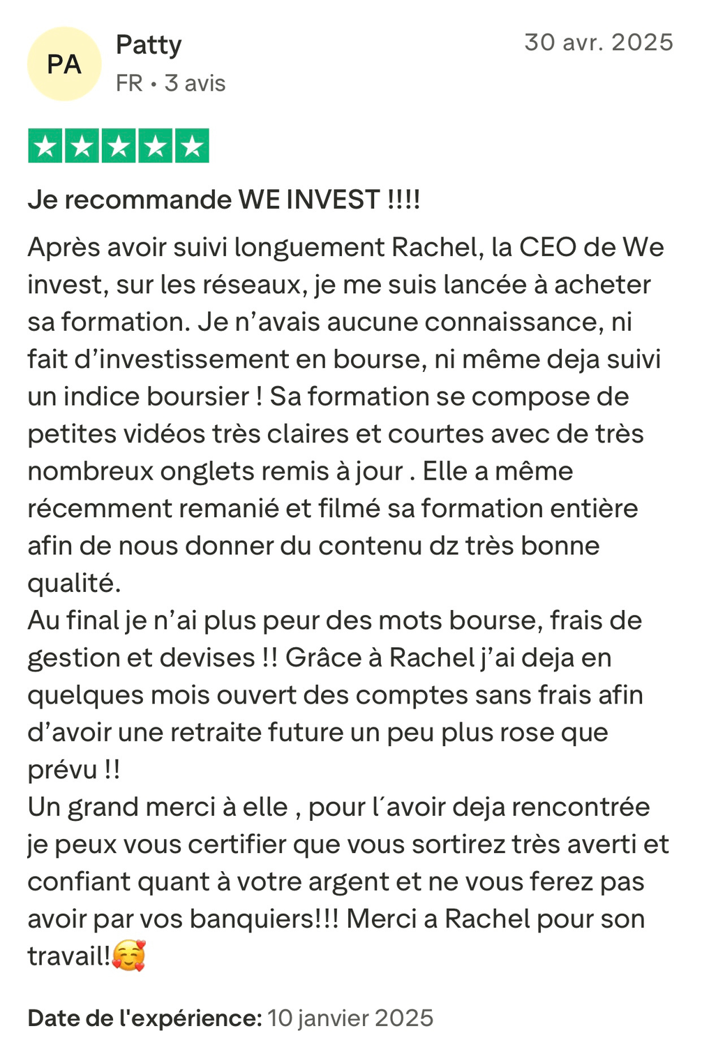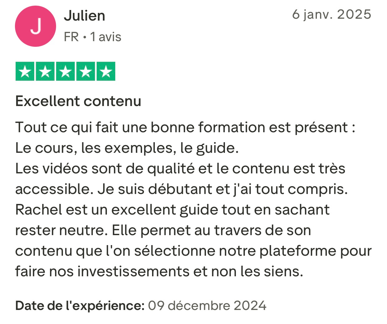 🤝 EN CLAIR : Tu n’es jamais seul(e) : tu fais partie d’une belle communauté d’investisseurs, tu as accès à des lives chaque mois, et un support personnalisé par mail est disponible dès ton entrée dans le programme.