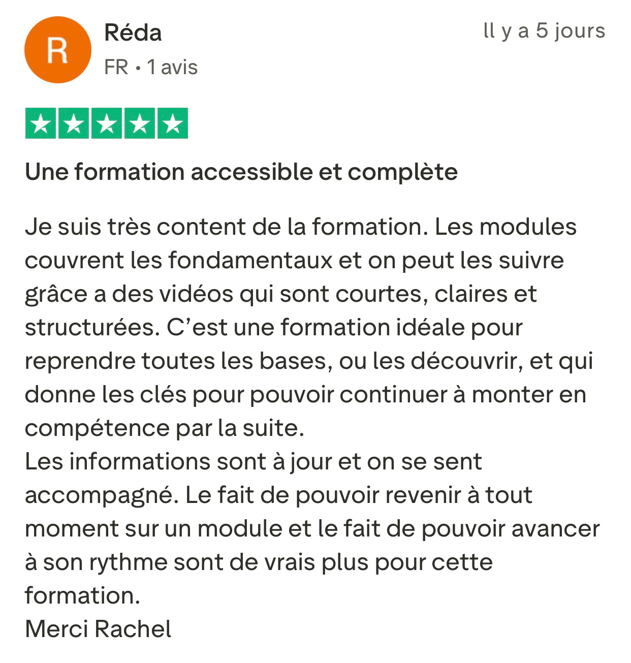 Absolument. La formation est disponible en ligne et accessible à ton rythme avec des vidéos très courtes qui vont à l’essentiel mais avec beaucoup de valeur.