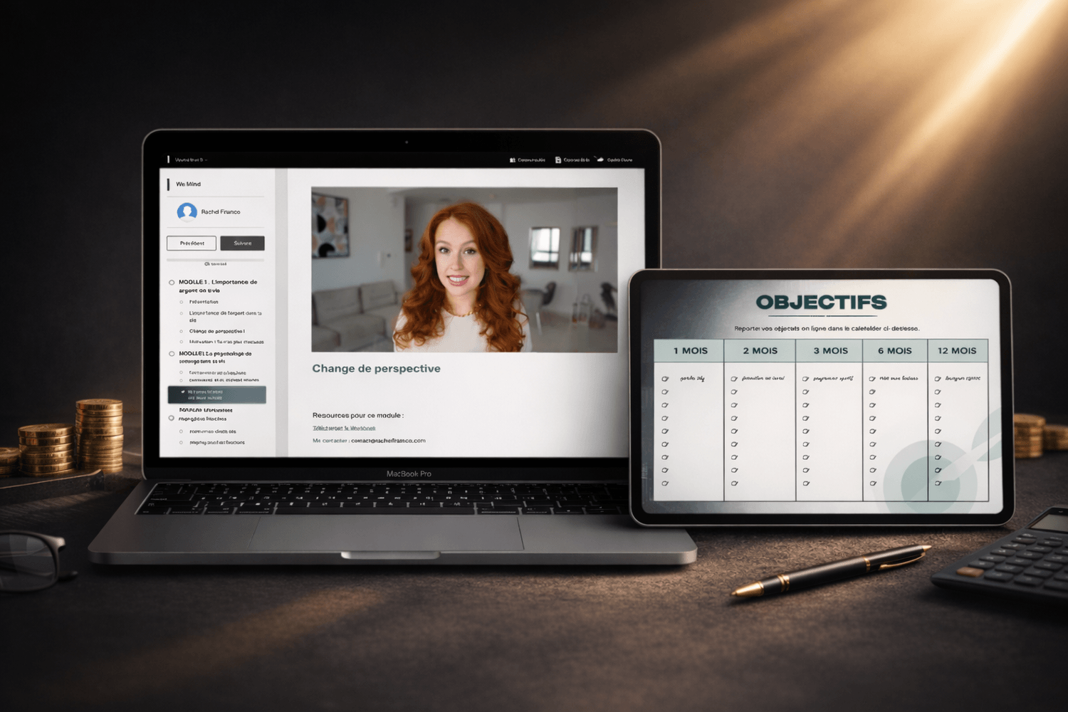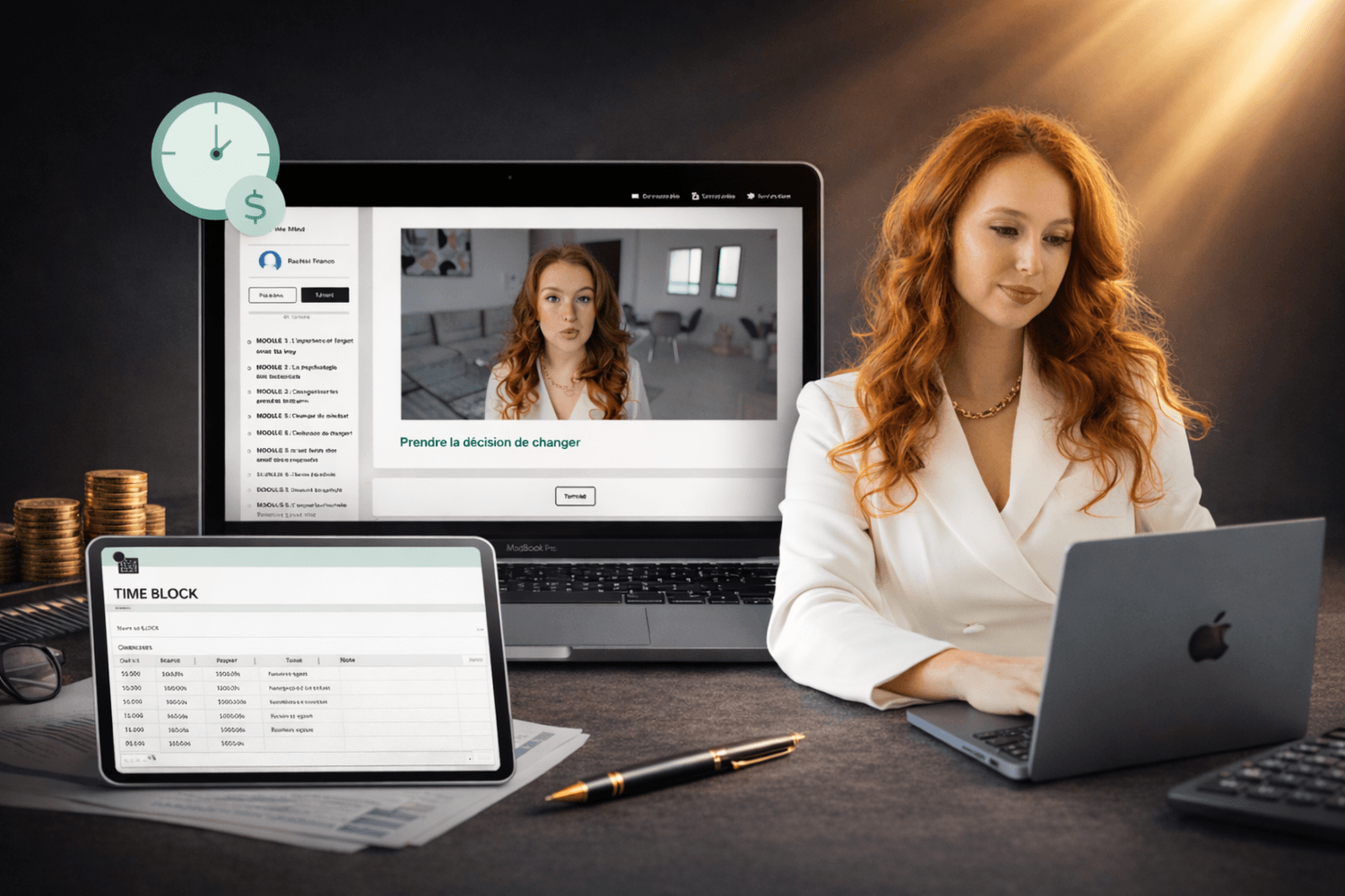Grâce au plan d'action totalement personnalisable que tu verras dans les workbooks : ils te permettront de faire des liens entre ta situation et ce que tu verras dans la formation.
